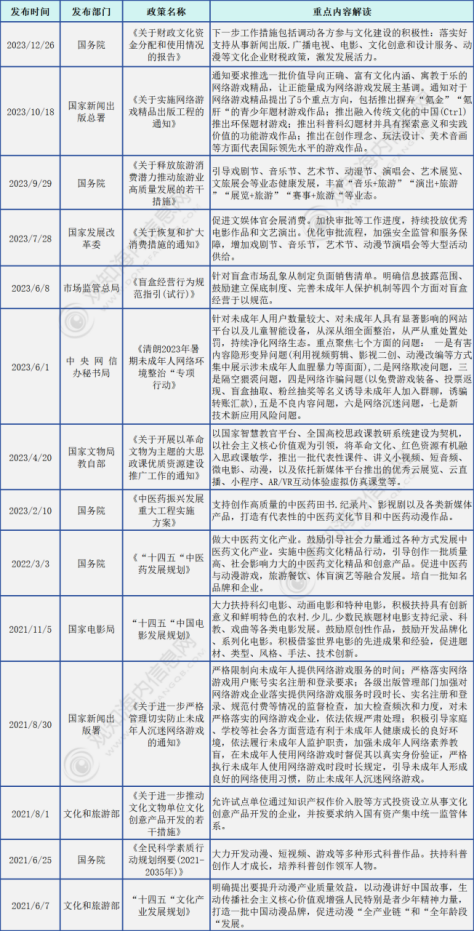 近年来,为支持创作高质量的中医药田书.纪录片、影视剧以及各类新媒体产品,打造有代表性的中医药文化节目和中医药动漫作品,我国陆续发布了一系列法规及产业政策,比如2024年发布的《关于财政文化资金分配和使用情况的报告》下一步工作措施包括调动各方参与文化建设的积极性:落实好支持从事新闻出版.广播电视、电影、文化创意和设计服务、动漫等文化企业财税政策,激发发展活力。