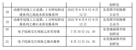2022年,东莞动漫之夏推陈出新,围绕“动漫文献信息中心、动漫创意活动场所、动漫产业服务基地、动漫发展研究平台”的服务定位,举办专业展览、创作分享、漫画肖像、互动涂鸦、产业展示等20余项多彩而颇具情怀的动漫文化活动,吸引了5.2万余读者参加,多家媒体宣传报道,产生了广泛社会影响,为广大读者奉上一场精彩纷呈的动漫嘉年华。