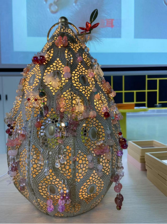 《红楼梦》是中国古典文学的瑰宝,其中不乏对精美头饰、服饰的细腻描写,作为传统手工艺,以其独特的魅力和精湛的制作技艺,为传统文化留下灿烂的艺术瑰宝。活动现场,围绕“辑珠侧凤 玩转红楼”主题,从《红楼梦》文学内涵讲起,逐步拆解相关手作创作技巧。参与者们在指尖揉捻间,将文学经典转化为立体艺术,感受非遗技艺的细腻与温度。家长与孩子携手创作,在传承非遗的同时,也搭建起亲子美育交流的桥梁。