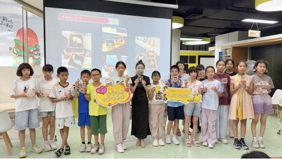 沉浸式观展、讲故事、亲子互动、情境模拟等方式,让抽象的文学概念变得可触可感。在夏令营,孩子们看到的不仅是对传统文学名著的深度理解,也有动手能力和创作能力的提升,同时也提供了亲子交流的有益渠道。非遗手作的作品五花八门,充满奇趣。没有标准答案的束缚,只有对孩子们大胆的创作,孩子们的眼睛里总闪着“原来还能这么美”的惊喜, 课堂上常围着老师追问“今天创作什么”,这份主动的好奇,正是夏令营最珍贵的果实。