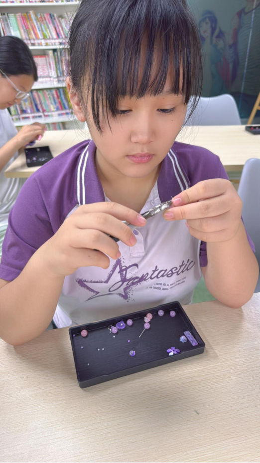 螺钿胸针DIY、古典耳环创作DIY、织锦发夹DIY、缠花发簪DIY和琉璃辑花DIY,让孩子们在艺术的海洋里畅游。生活处处是课堂,夏令营让孩子们在快乐中自然地将文学的梦融入生活,这种“玩着学、学着悟”的状态,正是我们最想看到的模样。有孩子评价“每天都像是在拆礼物,不知道会遇到怎样好玩的想法与创作”,这份纯粹的喜欢,是对本次夏令营最好的肯定。