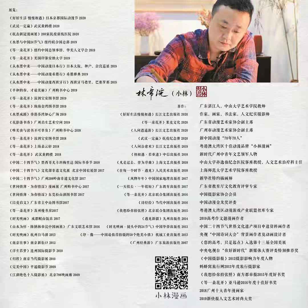 小林漫画以中国水墨线条为形式,描绘当代人生活中的喜怒哀乐,同时配有趣味又富有深意的“金句”,形成了独有的风格和特点,得到不同年龄层读者的喜爱。他在2020年疫情期间创作了大量的漫画作品,既有幽默也有温情,给予读者勇气和力量,鼓励、振奋了那些处在艰难时刻的人们。